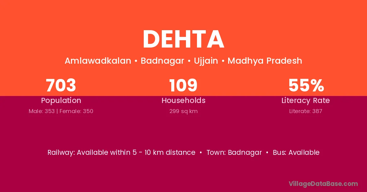 Badnagar is the nearest town to Dehta village for major economic activities
