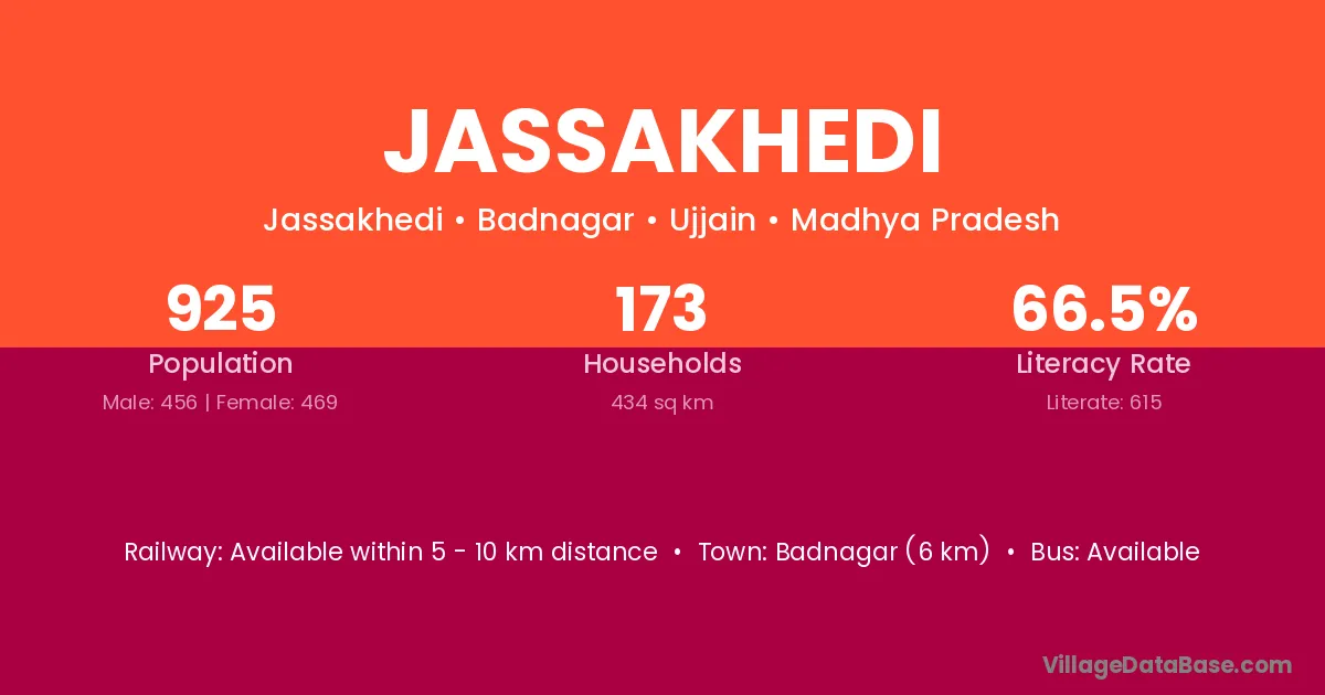 Badnagar (6 km) is the nearest town to Jassakhedi village for major economic activities and is located approximately 6 km away.