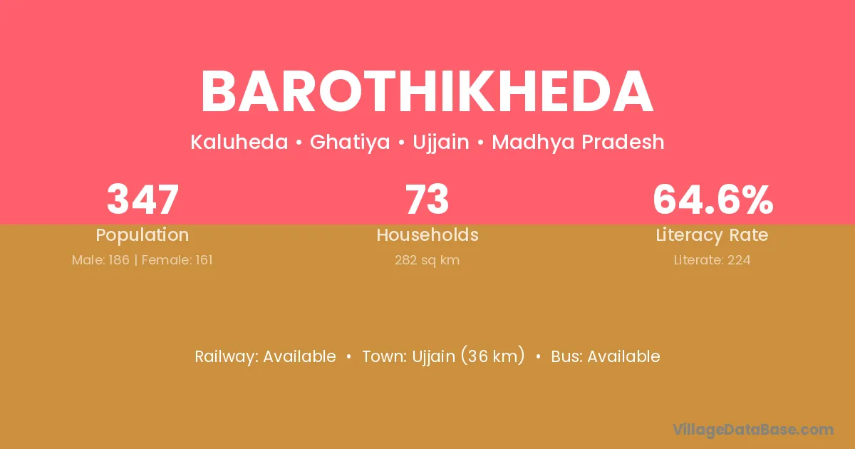 Barothikheda village has a total population of 347 people, of which 186 are males and 161 are females.