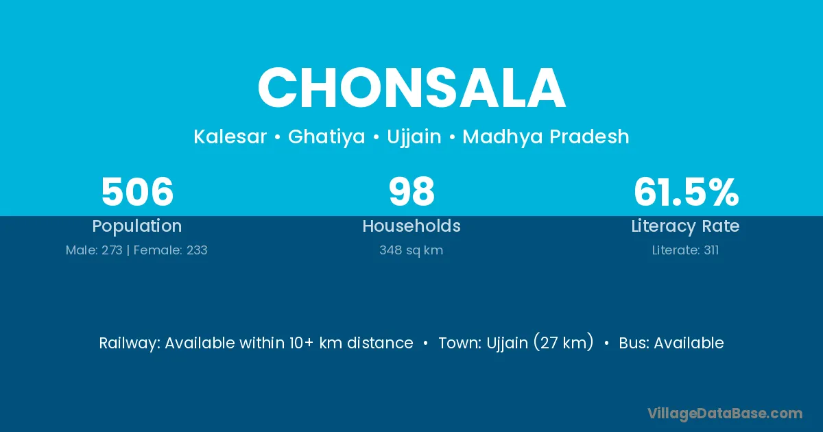 Ujjain (27 km) is the nearest town to Chonsala village for major economic activities and is located approximately 27 km away.