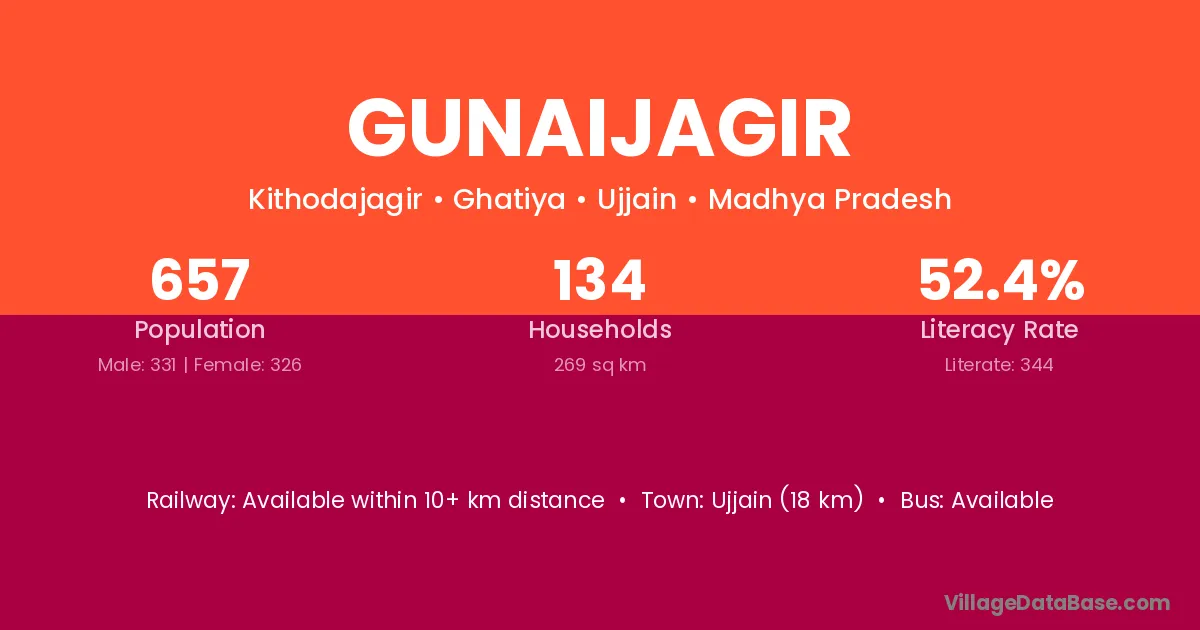 Ujjain (18 km) is the nearest town to Gunaijagir village for major economic activities and is located approximately 18 km away.