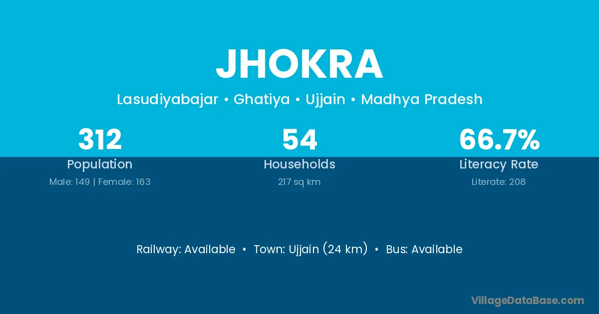Ujjain (24 km) is the nearest town to Jhokra village for major economic activities and is located approximately 24 km away.