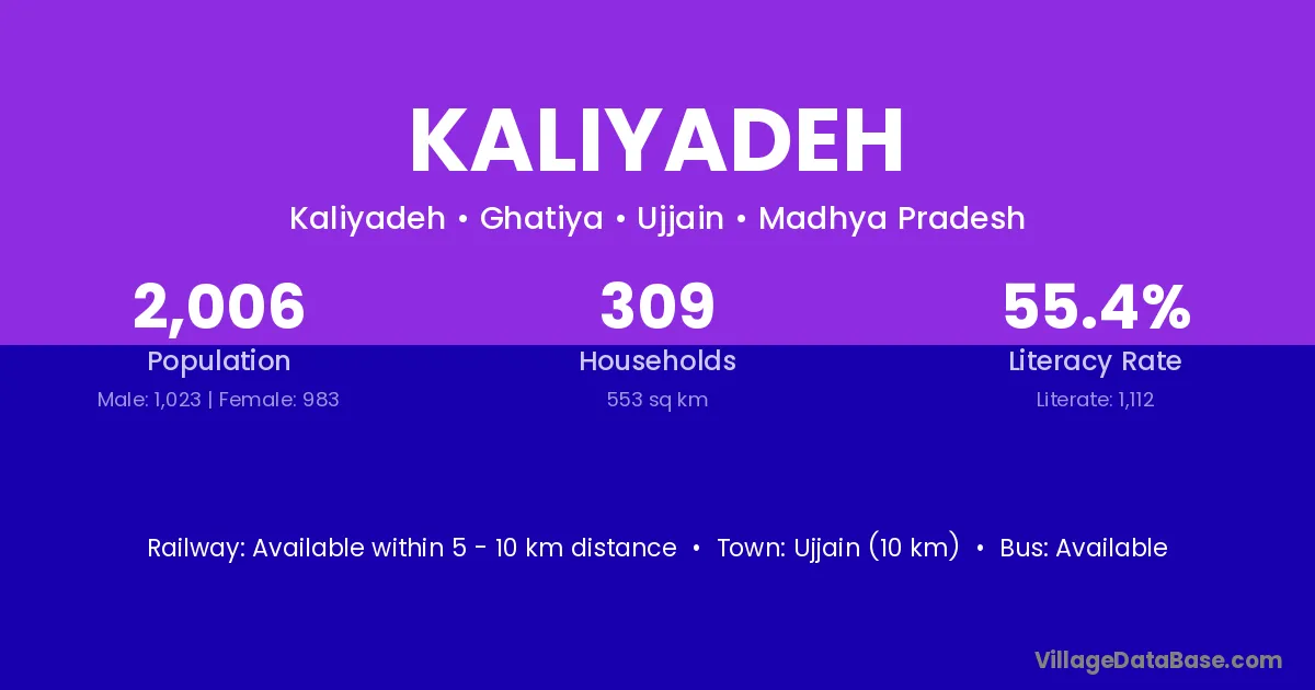 Ujjain (10 km) is the nearest town to Kaliyadeh village for major economic activities and is located approximately 10 km away.