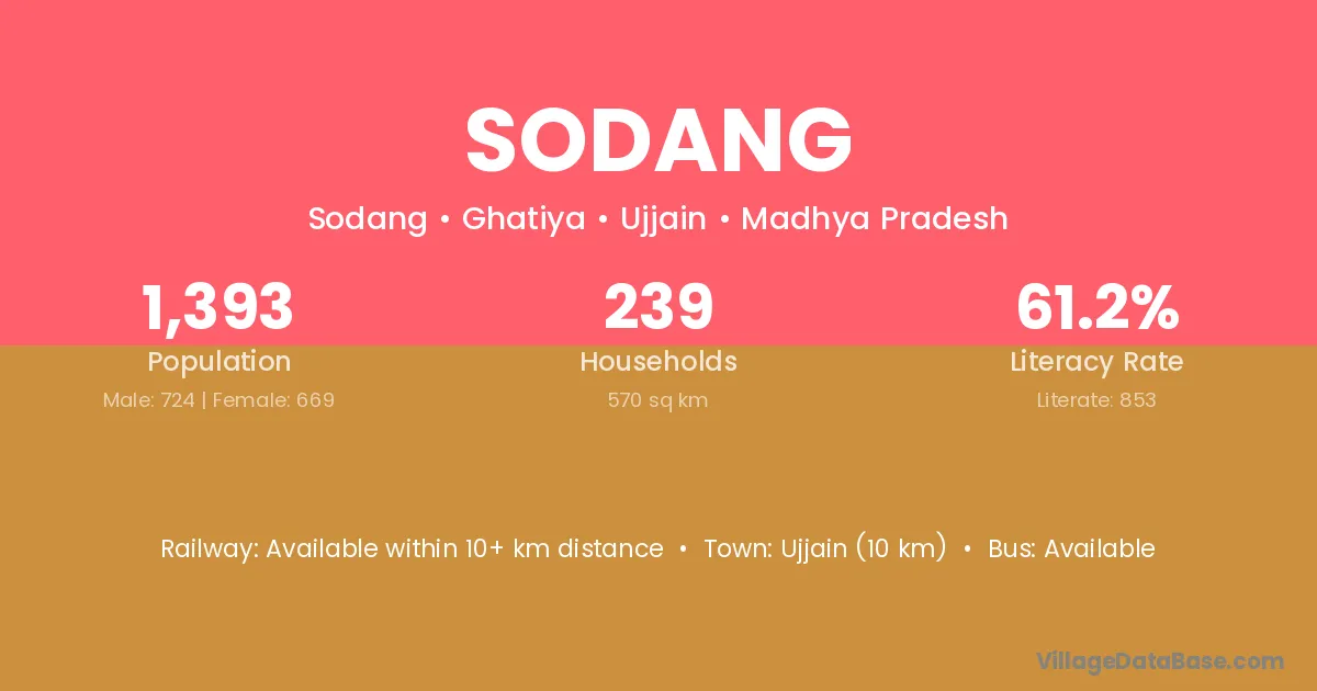 Ujjain (10 km) is the nearest town to Sodang village for major economic activities and is located approximately 10 km away.
