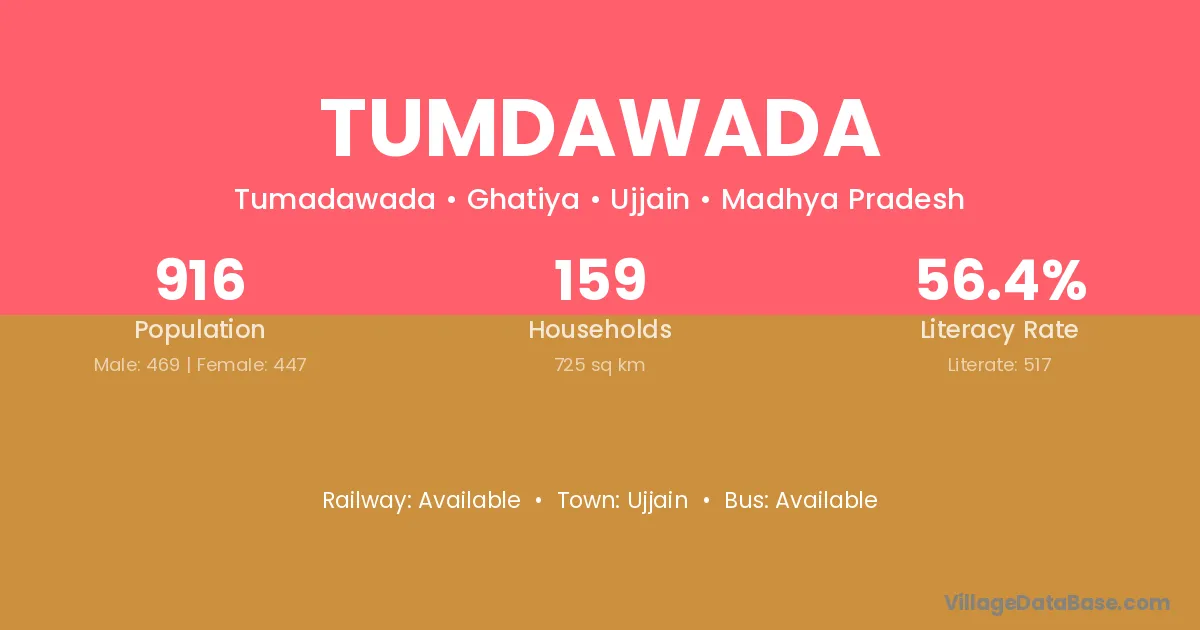 Tumdawada village has a total population of 916 people, of which 469 are males and 447 are females.