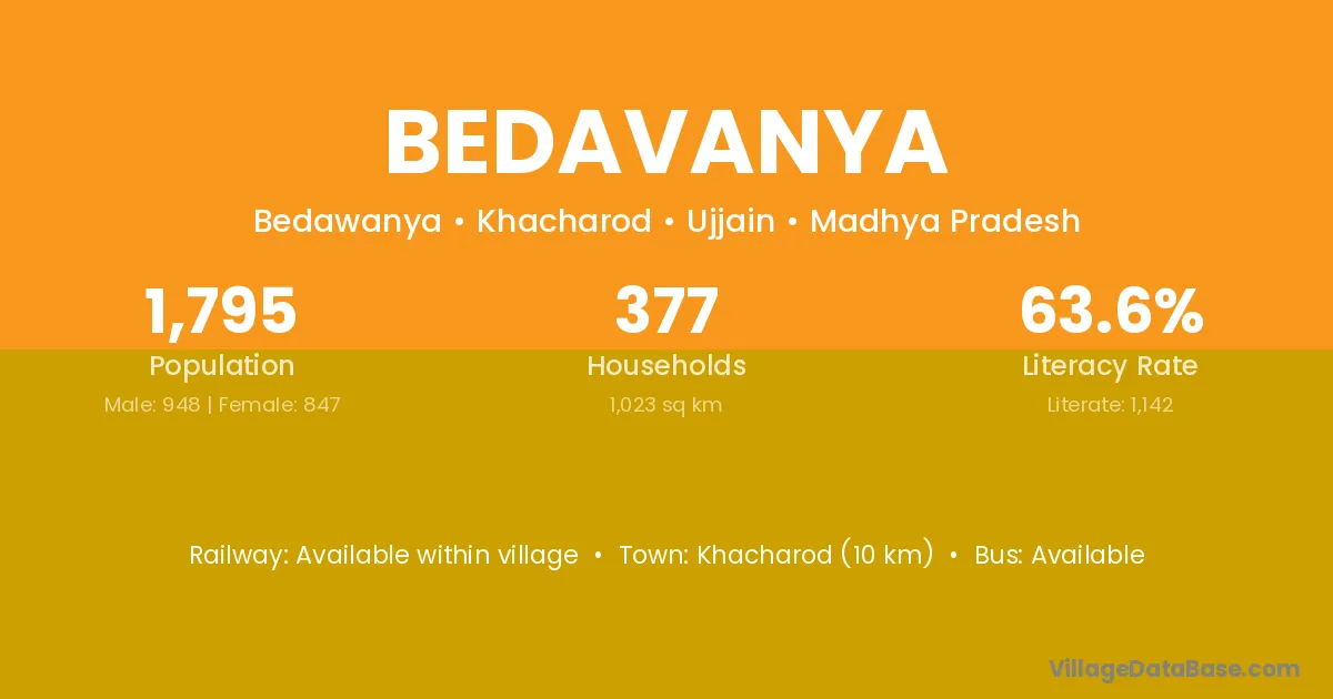 Bedavanya village is located in the Khacharod Tehsil of the Ujjain district in Madhya Pradesh .