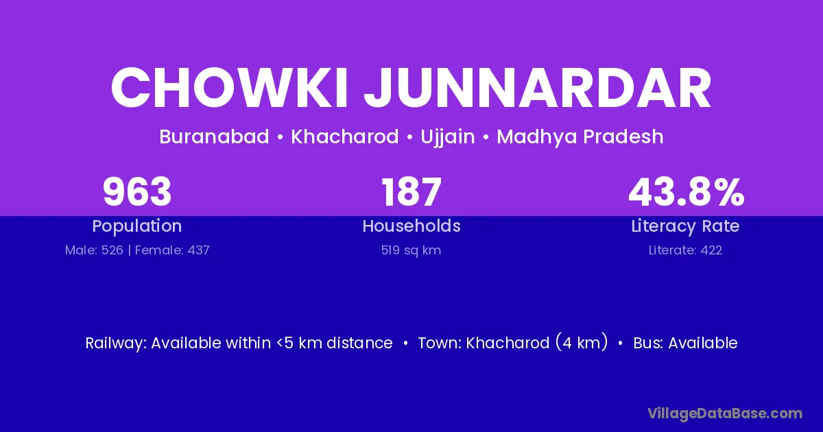 Khacharod (4 km) is the nearest town to Chowki Junnardar village for major economic activities and is located approximately 4 km away.