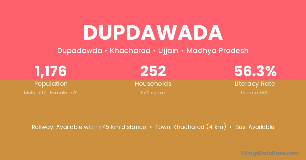Khacharod (4 km) is the nearest town to Dupdawada village for major economic activities and is located approximately 4 km away.