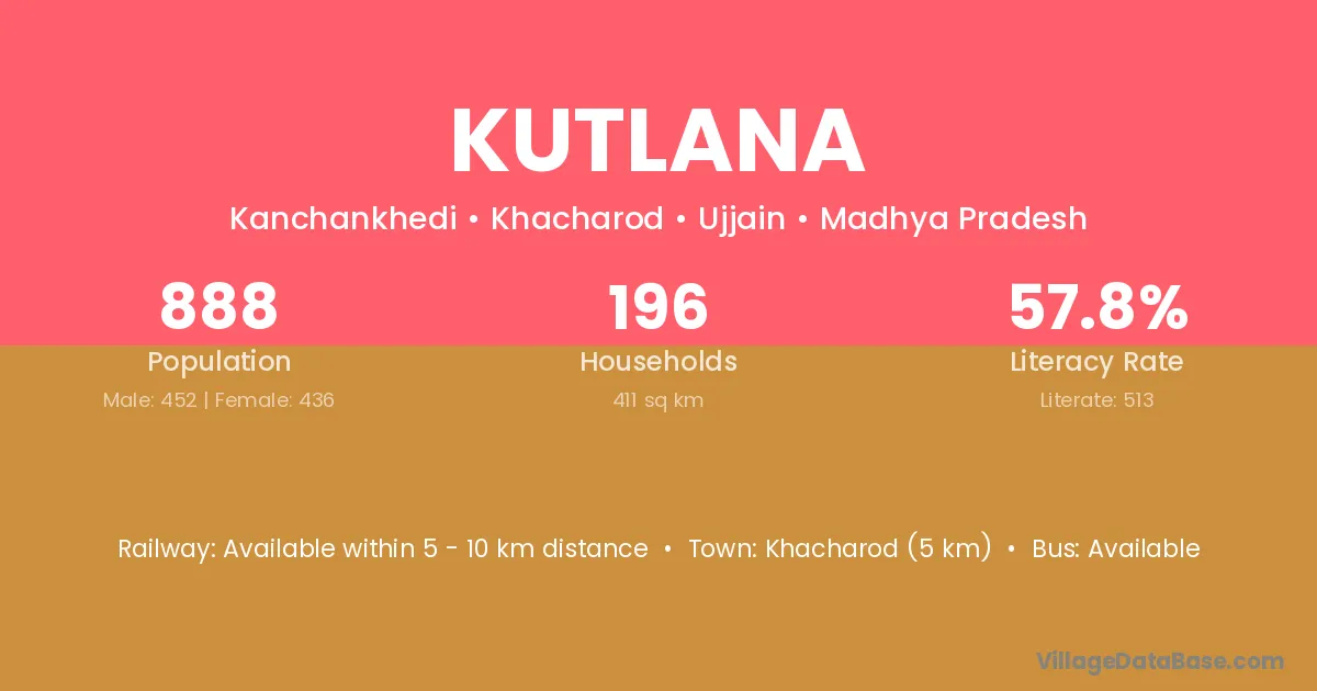 Khacharod (5 km) is the nearest town to Kutlana village for major economic activities and is located approximately 5 km away.