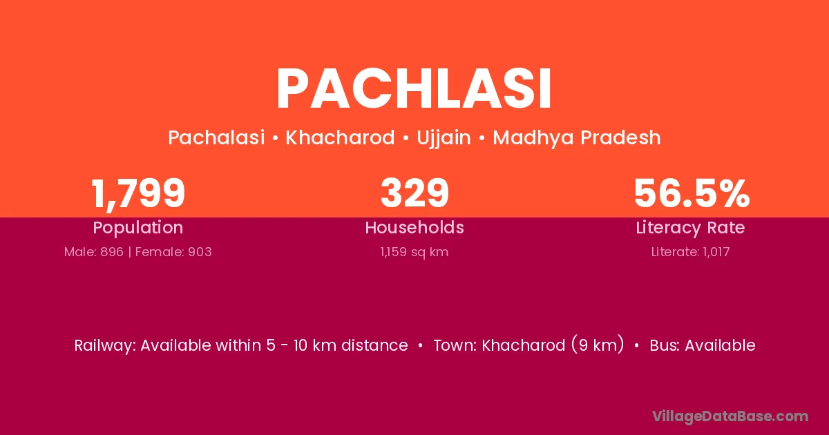 Khacharod (9 km) is the nearest town to Pachlasi village for major economic activities and is located approximately 9 km away.