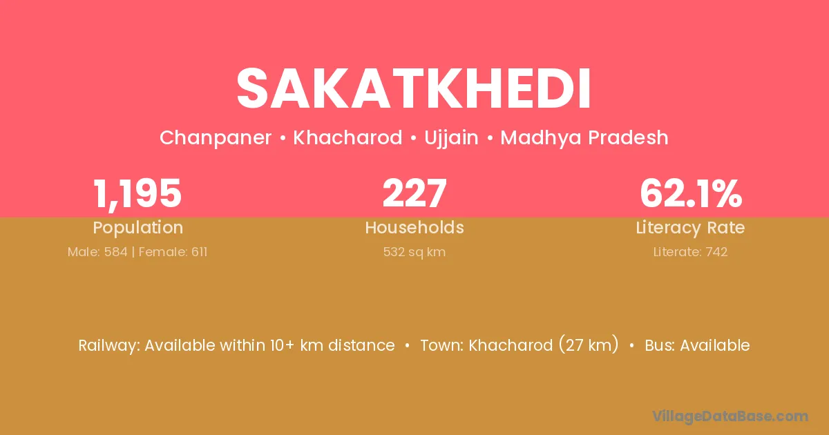Sakatkhedi village has a total population of 1,195 people, of which 584 are males and 611 are females.