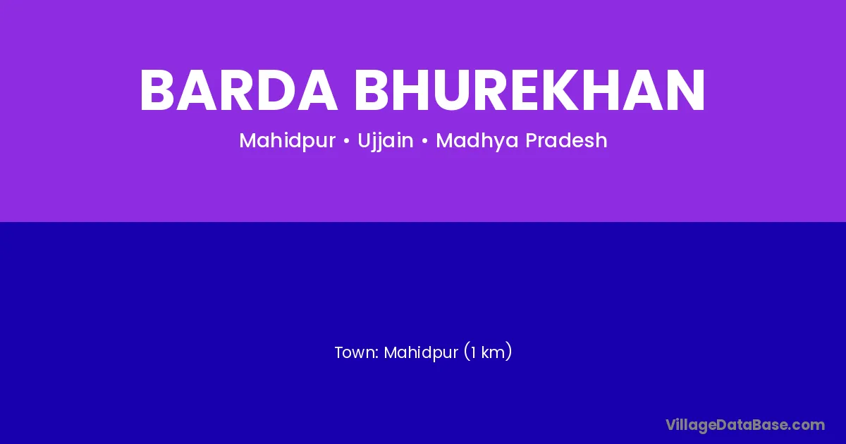 Mahidpur (1 km) is the nearest town to Barda Bhurekhan village for major economic activities and is located approximately 1 km away.