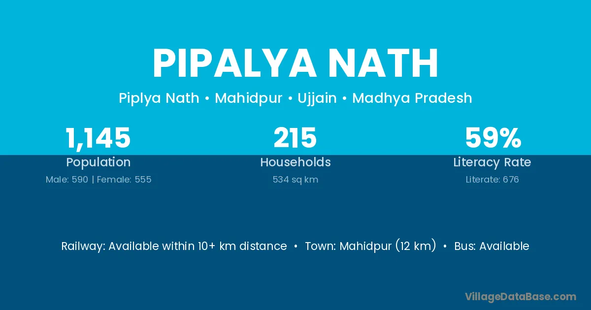 Mahidpur (12 km) is the nearest town to Pipalya Nath village for major economic activities and is located approximately 12 km away.