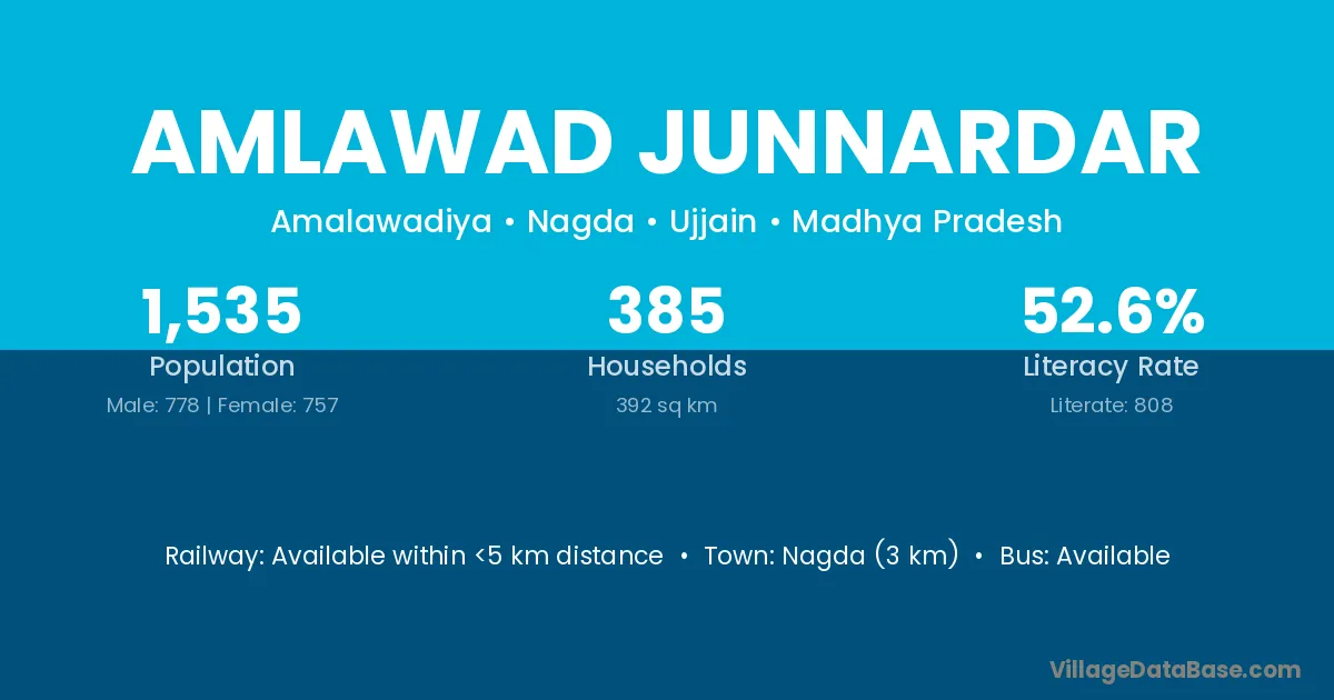 Nagda (3 km) is the nearest town to Amlawad Junnardar village for major economic activities and is located approximately 3 km away.