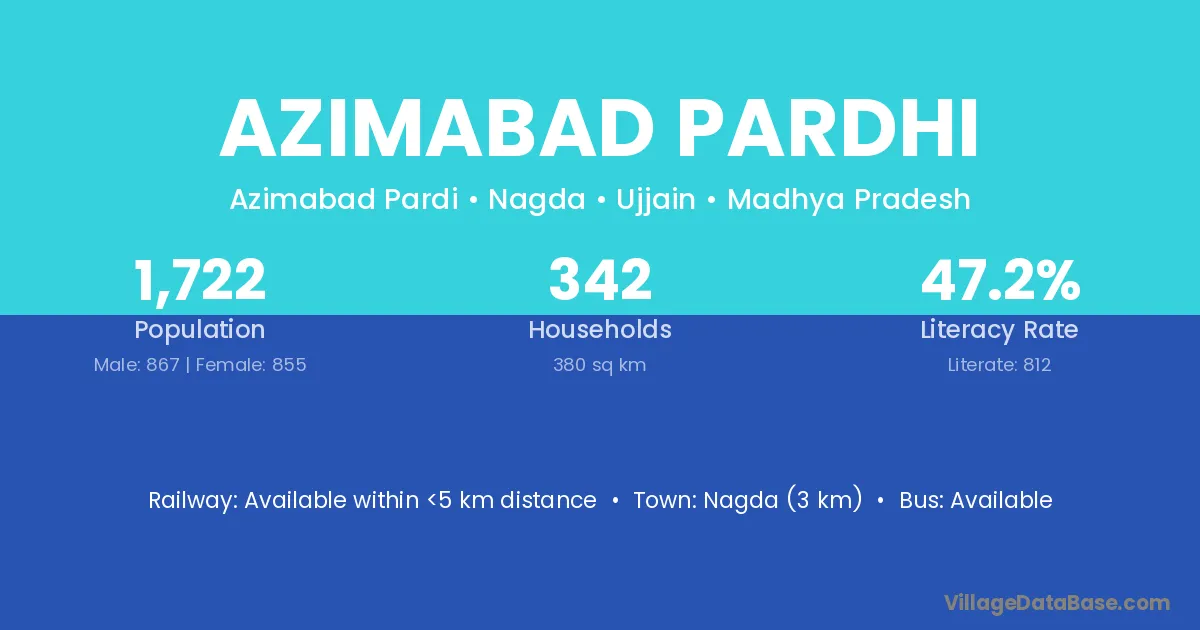 Nagda (3 km) is the nearest town to Azimabad Pardhi village for major economic activities and is located approximately 3 km away.