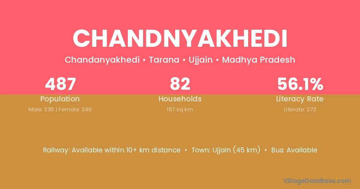 Chandnyakhedi village has a total population of 487 people, of which 238 are males and 249 are females.