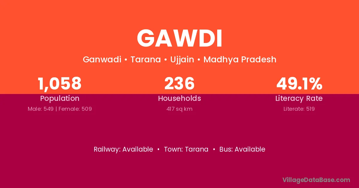 Gawdi village has a total population of 1,058 people, of which 549 are males and 509 are females.