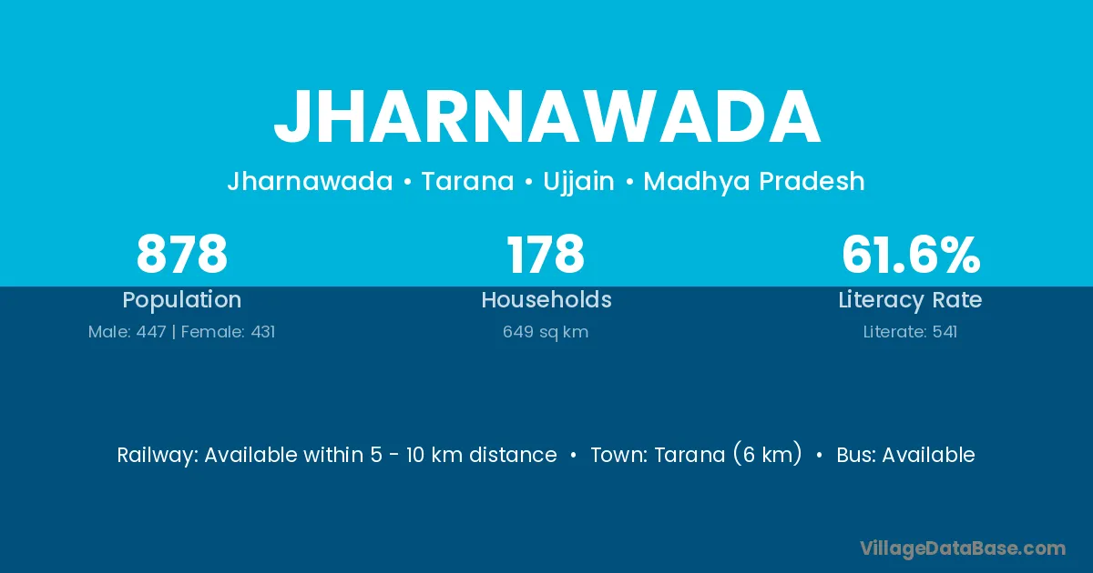 Tarana (6 km) is the nearest town to Jharnawada village for major economic activities and is located approximately 6 km away.