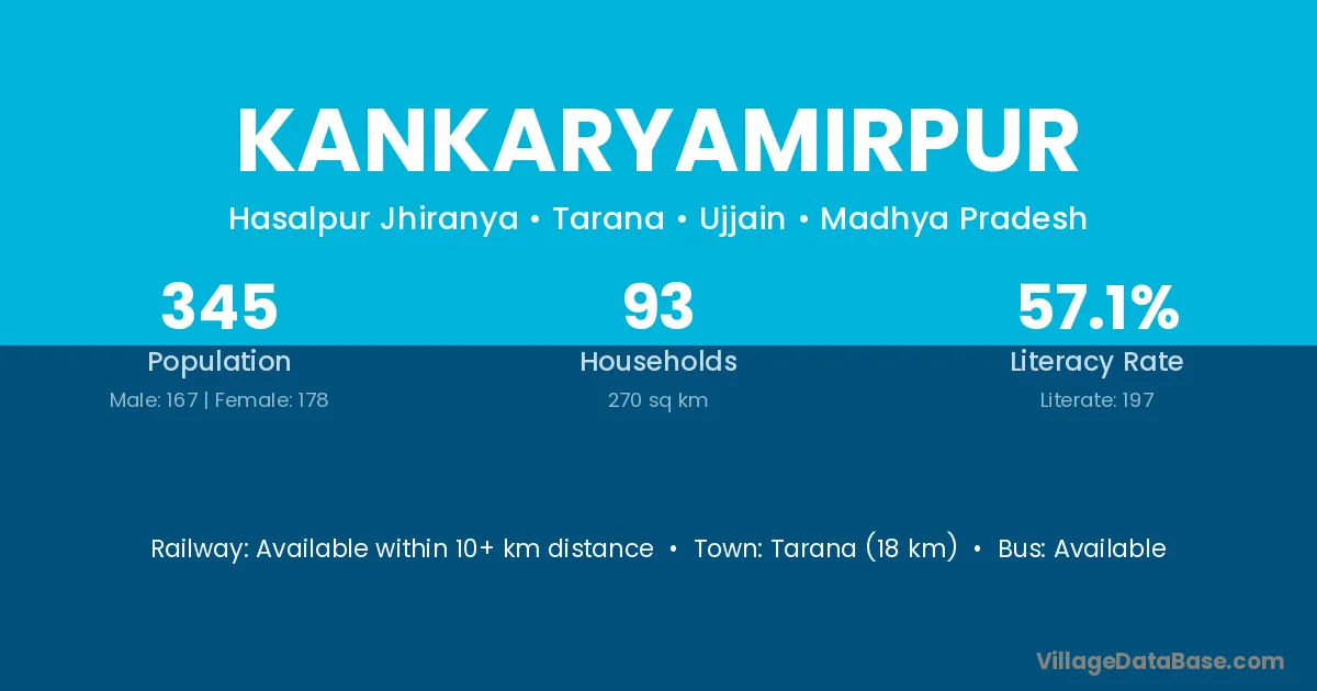 Tarana (18 km) is the nearest town to Kankaryamirpur village for major economic activities and is located approximately 18 km away.