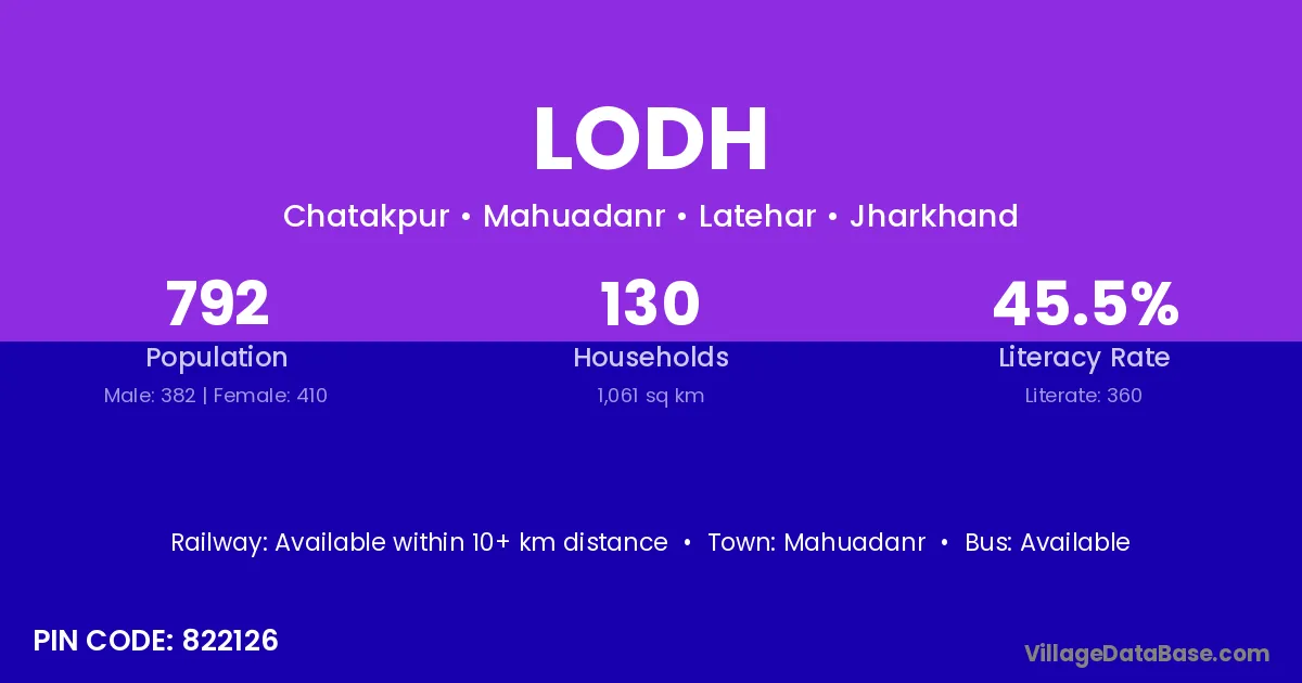 Lodh village has a total population of 1,426 people, of which 732 are males and 694 are females.