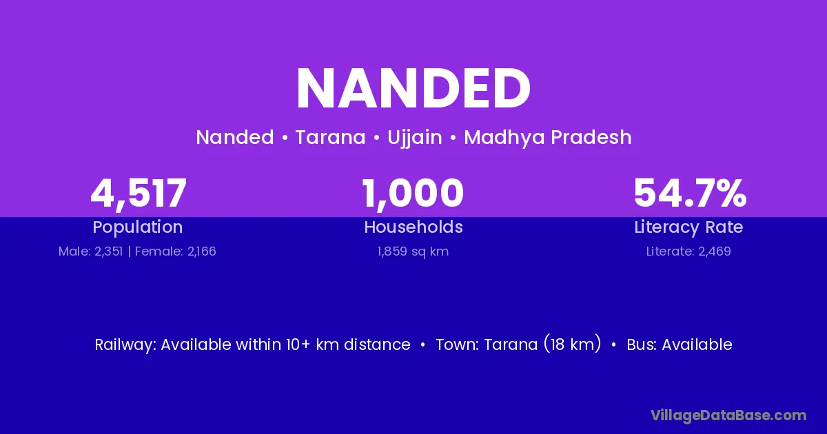 Tarana (18 km) is the nearest town to Nanded village for major economic activities and is located approximately 18 km away.
