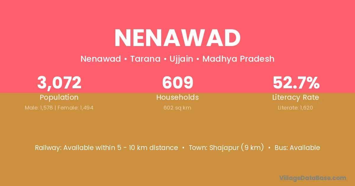 There are approximately 609 households in Nenawad village.