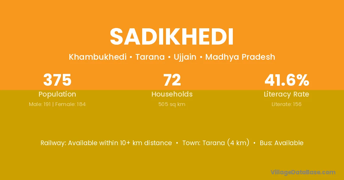 Sadikhedi village has a total population of 375 people, of which 191 are males and 184 are females.