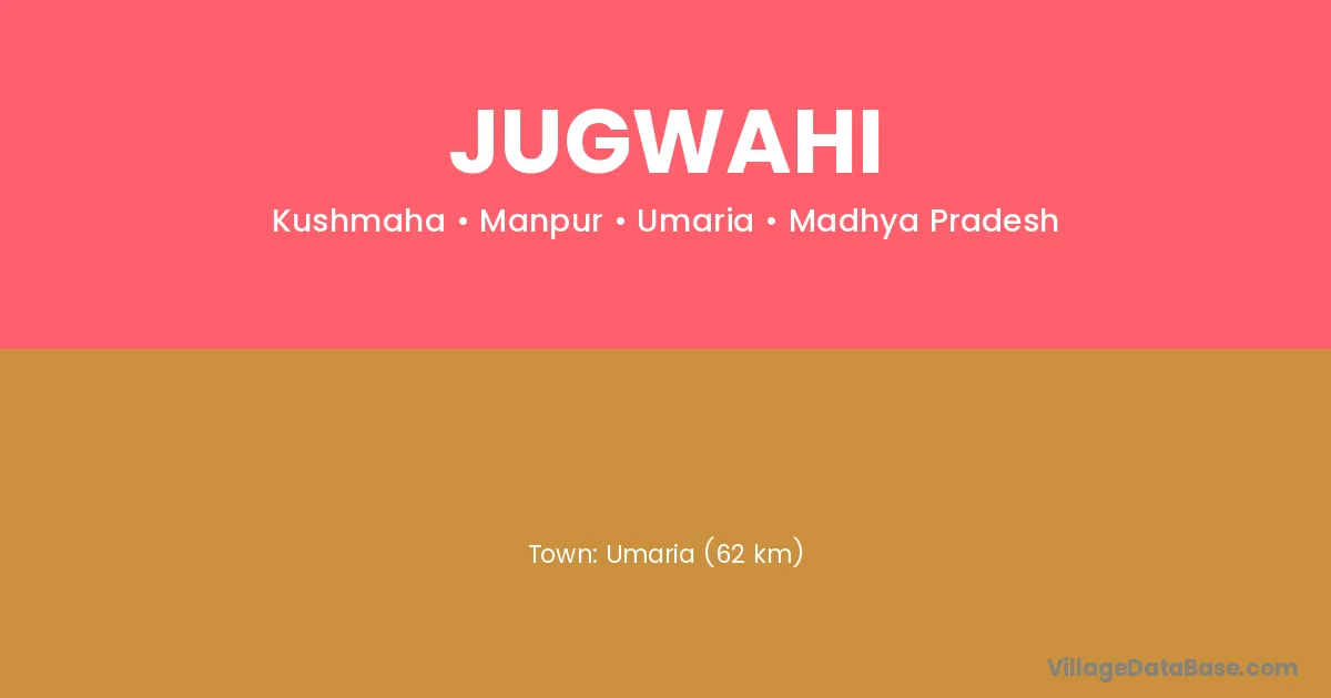 Umaria (62 km) is the nearest town to Jugwahi village for major economic activities and is located approximately 62 km away.