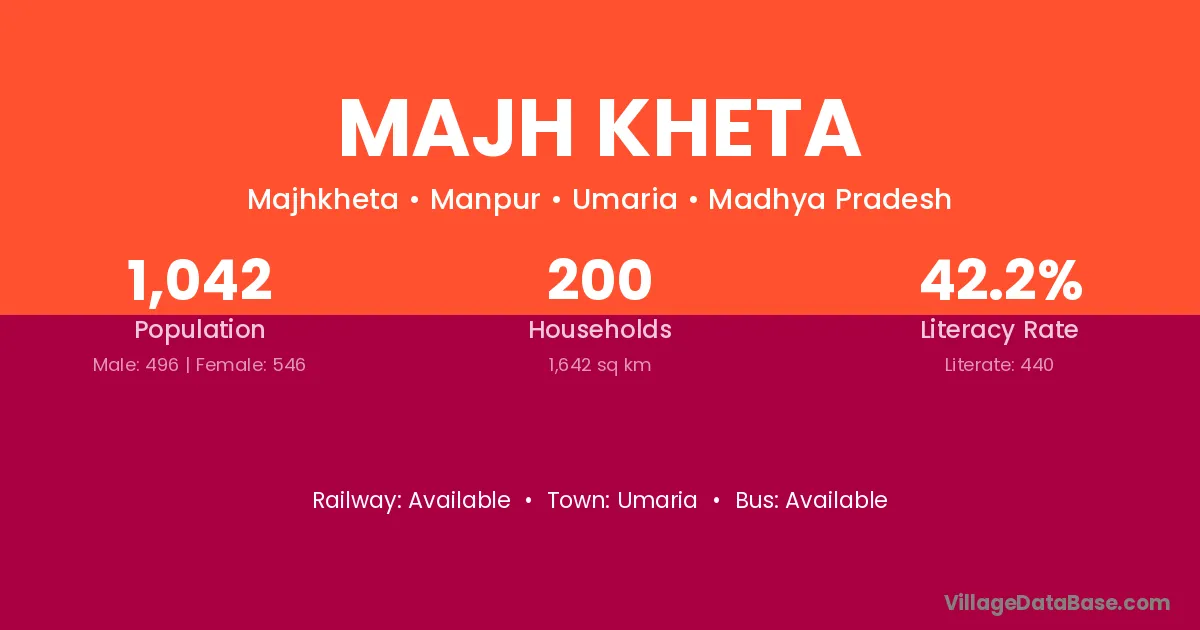 Majh Kheta village has a total population of 1,042 people, of which 496 are males and 546 are females.