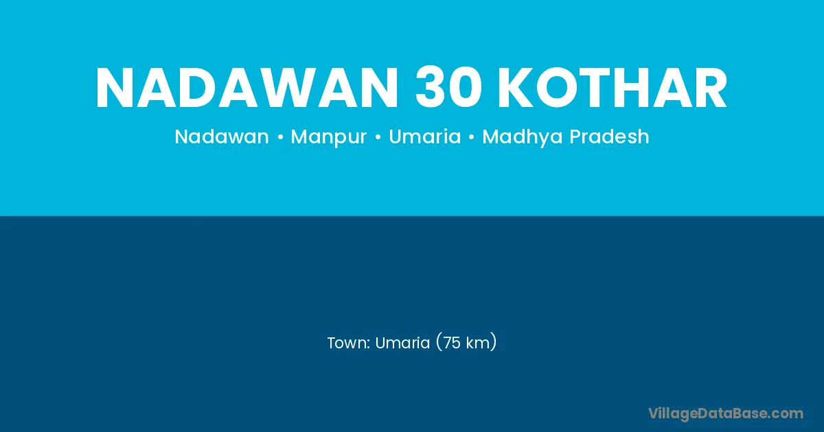 Umaria (75 km) is the nearest town to Nadawan 30 Kothar village for major economic activities and is located approximately 75 km away.