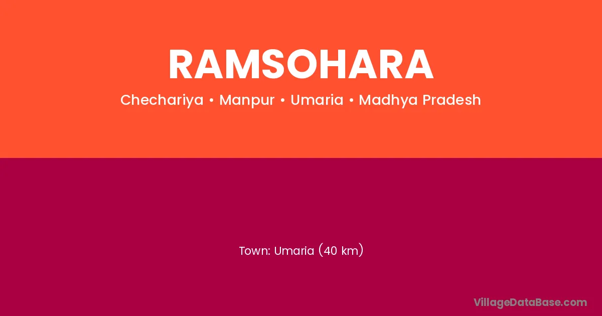 Umaria (40 km) is the nearest town to Ramsohara village for major economic activities and is located approximately 40 km away.