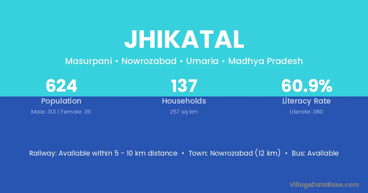 Nowrozabad (12 km) is the nearest town to Jhikatal village for major economic activities and is located approximately 12 km away.