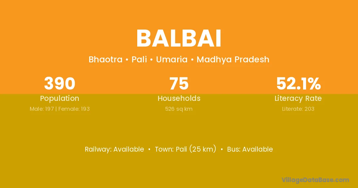 Balbai village has a total population of 390 people, of which 197 are males and 193 are females.