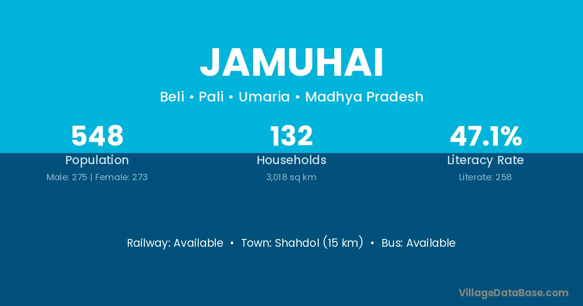 Shahdol (15 km) is the nearest town to Jamuhai village for major economic activities and is located approximately 15 km away.