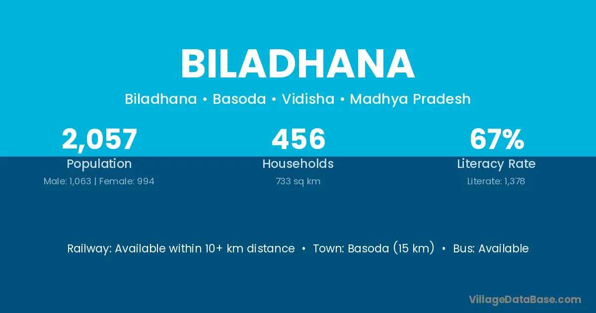 Basoda (15 km) is the nearest town to Biladhana village for major economic activities and is located approximately 15 km away.