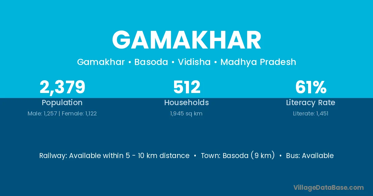 Basoda (9 km) is the nearest town to Gamakhar village for major economic activities and is located approximately 9 km away.