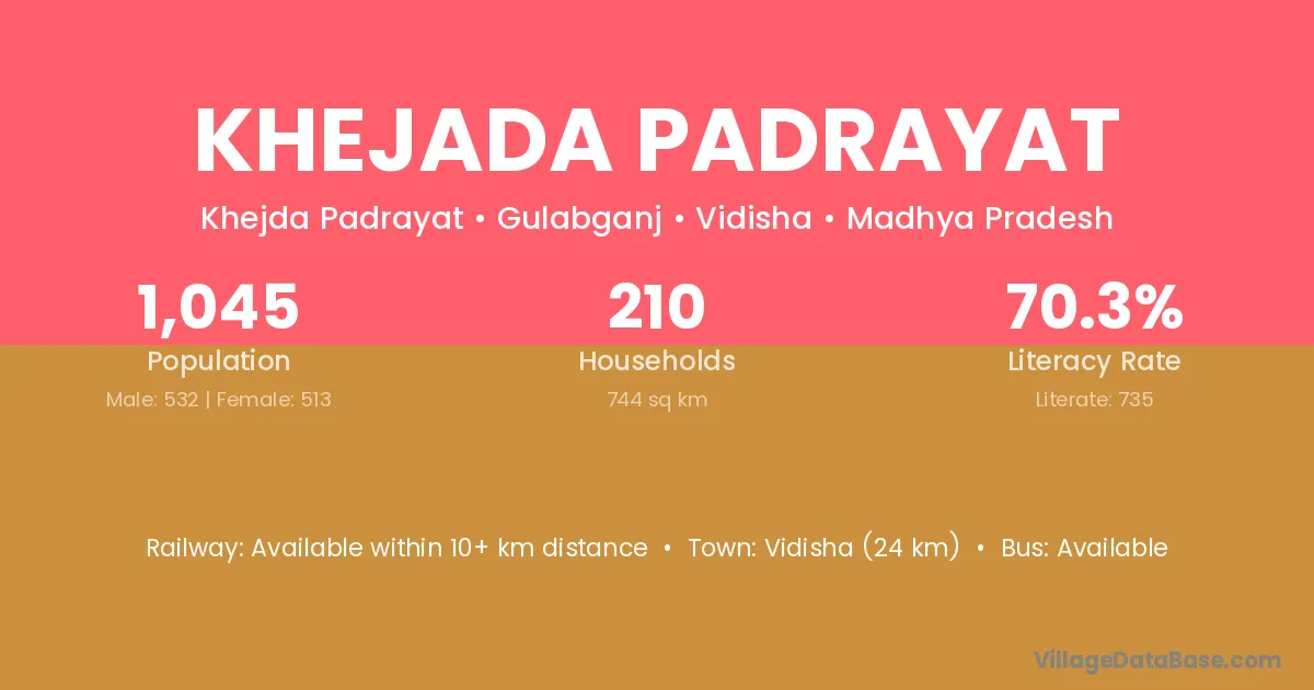 Vidisha (24 km) is the nearest town to Khejada Padrayat village for major economic activities and is located approximately 24 km away.