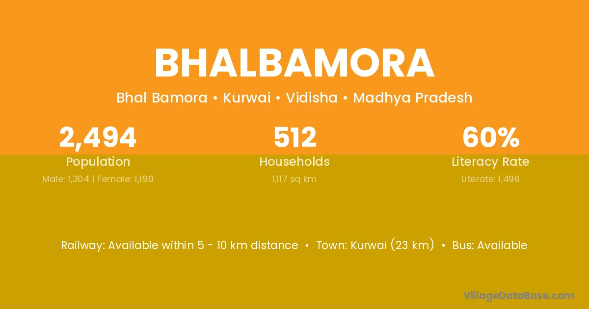 Kurwai (23 km) is the nearest town to Bhalbamora village for major economic activities and is located approximately 23 km away.