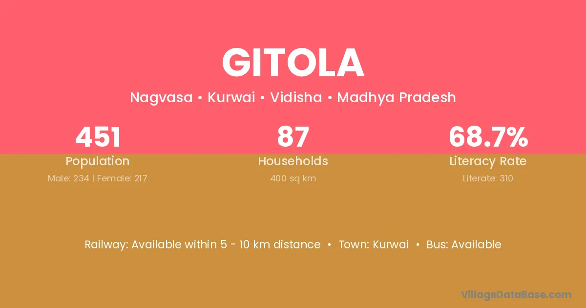 Gitola village is located in the Kurwai Tehsil of the Vidisha district in Madhya Pradesh .