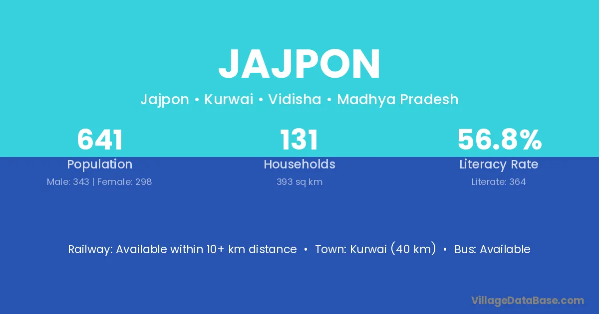 Kurwai (40 km) is the nearest town to Jajpon village for major economic activities and is located approximately 40 km away.