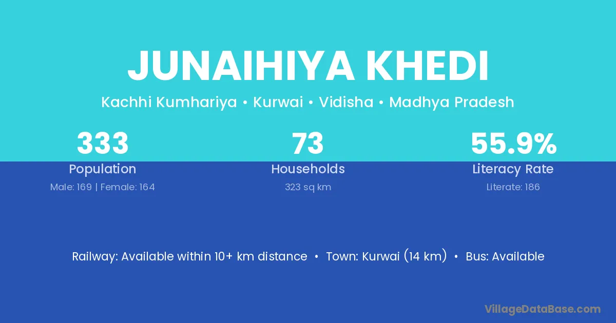 Kurwai (14 km) is the nearest town to Junaihiya Khedi village for major economic activities and is located approximately 14 km away.