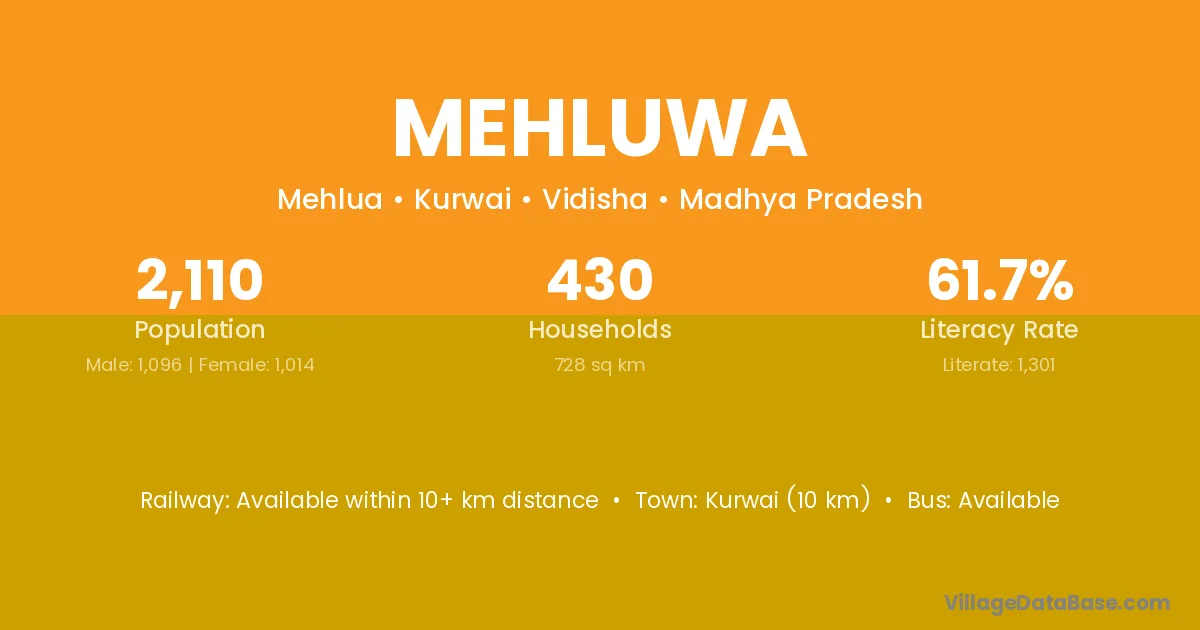 Kurwai (10 km) is the nearest town to Mehluwa village for major economic activities and is located approximately 10 km away.