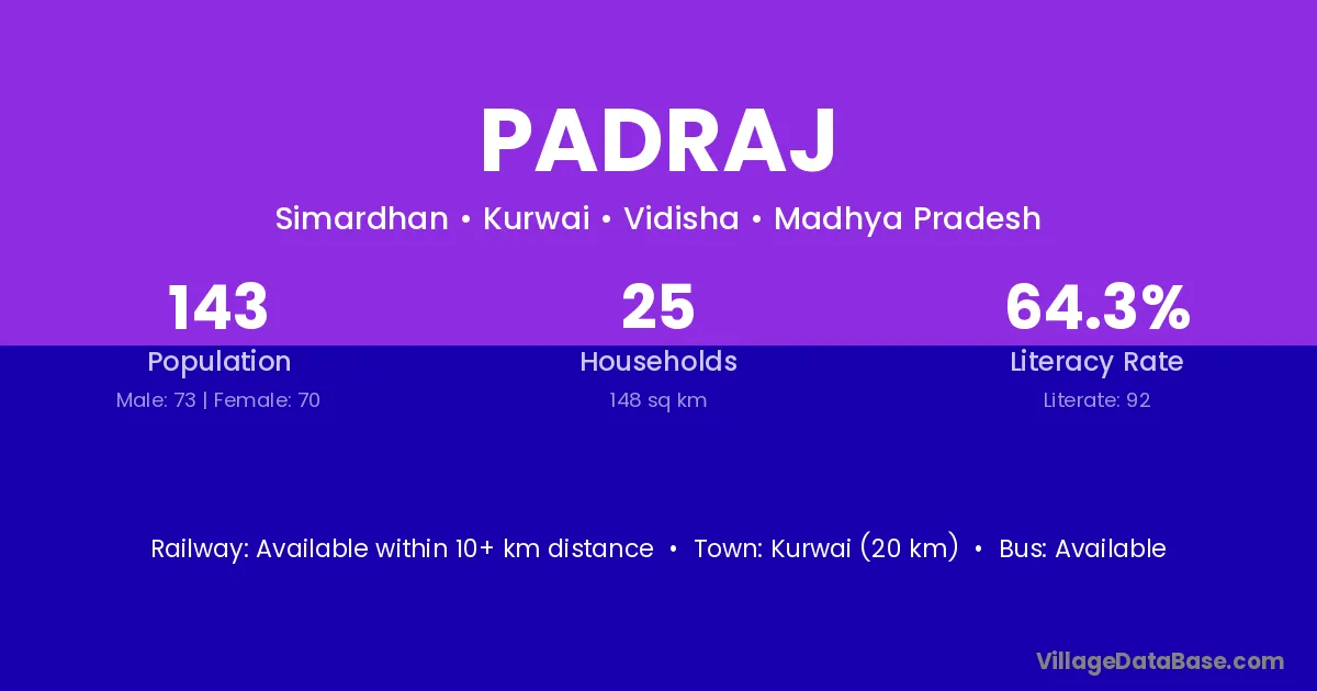 Kurwai (20 km) is the nearest town to Padraj village for major economic activities and is located approximately 20 km away.