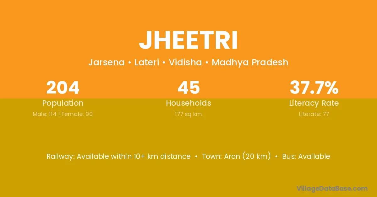Aron (20 km) is the nearest town to Jheetri village for major economic activities and is located approximately 20 km away.