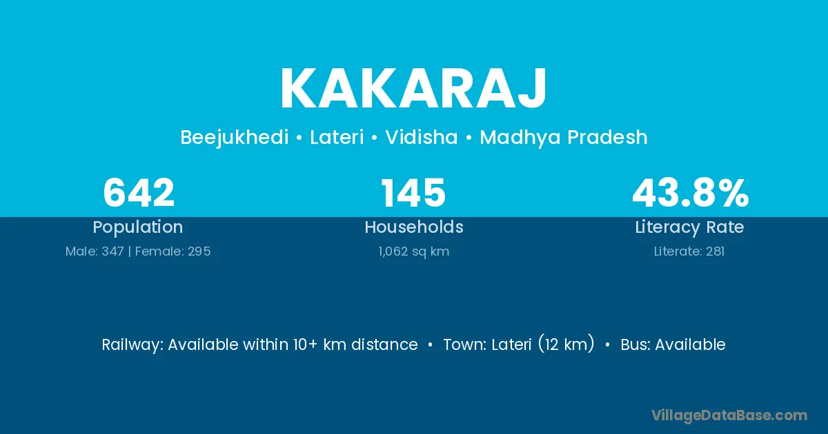 Lateri (12 km) is the nearest town to Kakaraj village for major economic activities and is located approximately 12 km away.