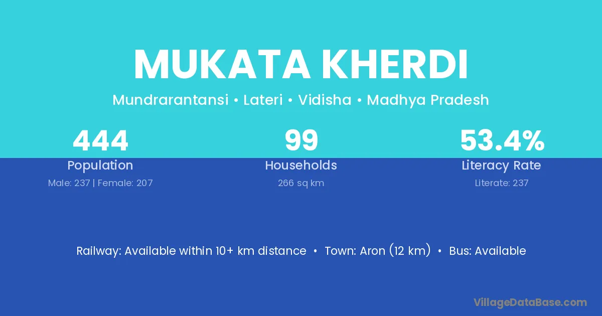 Mukata Kherdi village has a total population of 444 people, of which 237 are males and 207 are females.