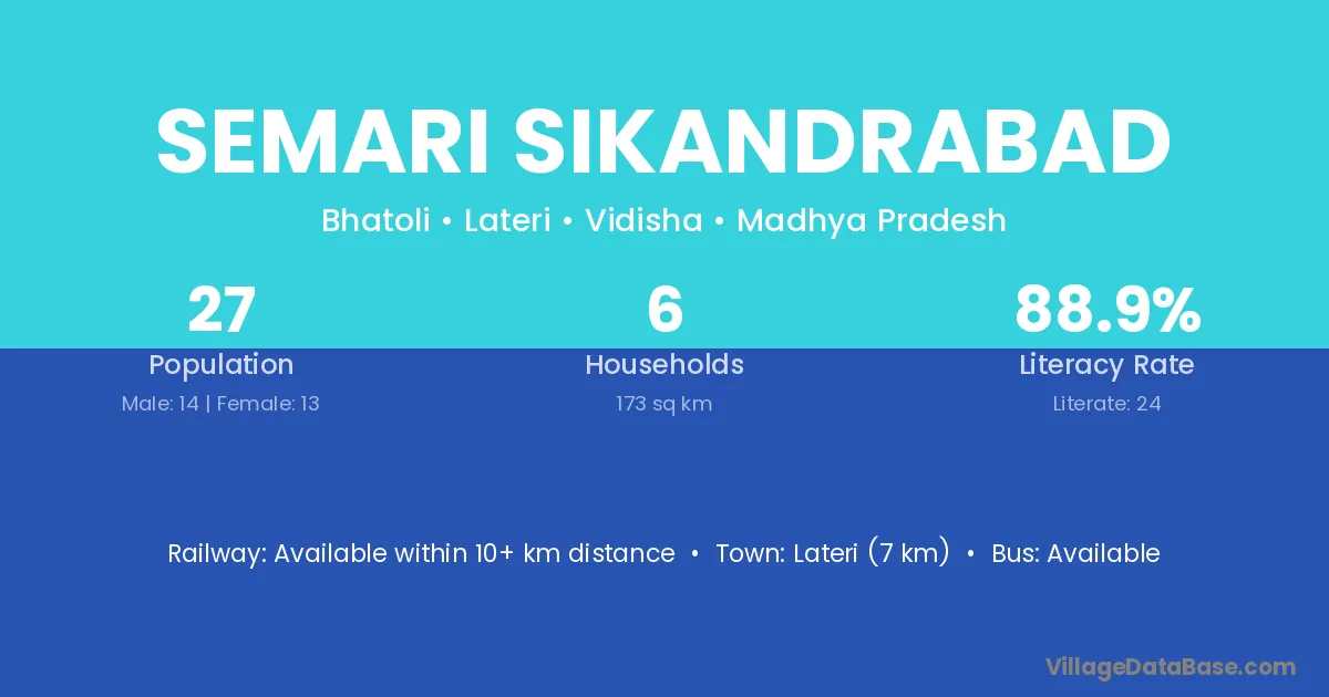 Lateri (7 km) is the nearest town to Semari Sikandrabad village for major economic activities and is located approximately 7 km away.