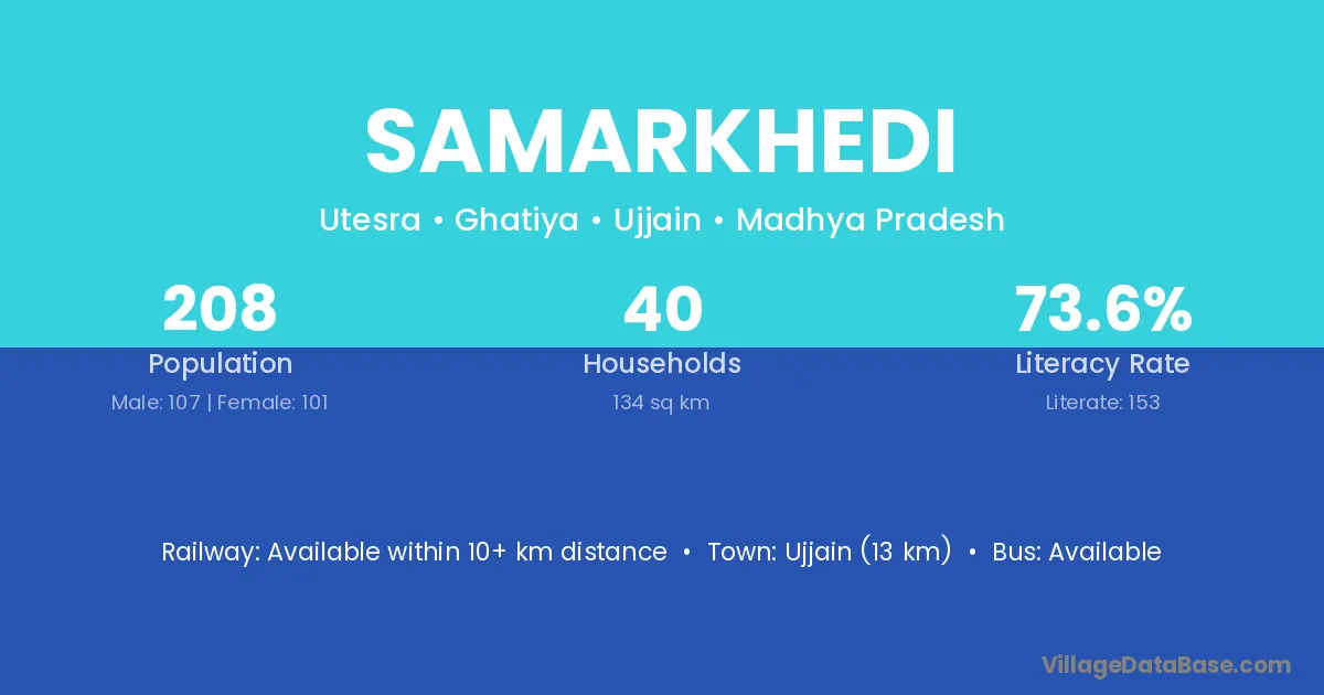 Vidisha (47 km) is the nearest town to Samarkhedi village for major economic activities and is located approximately 47 km away.