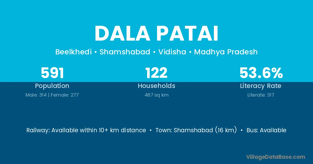 Shamshabad (16 km) is the nearest town to Dala Patai village for major economic activities and is located approximately 16 km away.