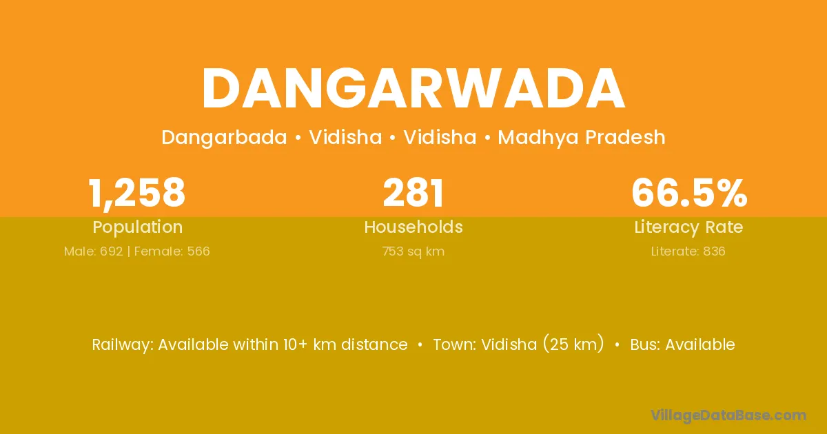 There are approximately 445 households in Dangarwada village.